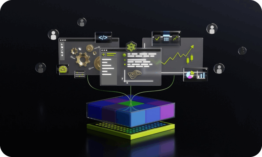 Suas bibliotecas permitem a integração de funcionalidades pré-criadas em soluções de software, apoiadas pela expertise da NVIDIA em computação acelerada e IA. Em destaque, a colaboração entre NVIDIA e Siemens acelera a digitalização industrial por meio de gêmeos digitais imersivos.