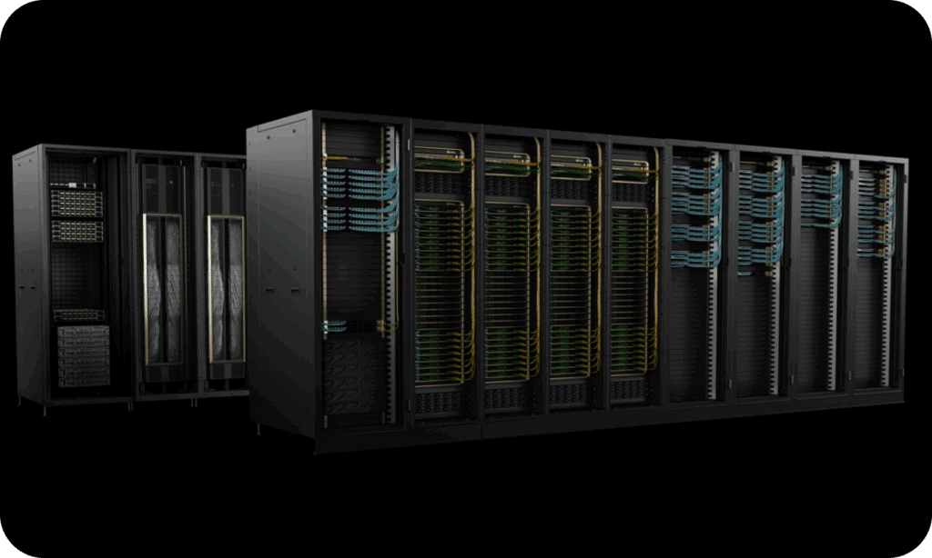 Com conectividade de alto desempenho entre servidores de GPU, recursos avançados de segurança e descargas inteligentes com InfiniBand, RoCE e DPUs NVIDIA BlueField, a infraestrutura combina software e hardware acelerado para a era da IA.